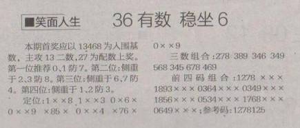【笑面人生】第1256预测信息<特区报>