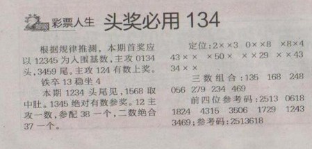 【彩票人生】第1257预测信息<特区报>