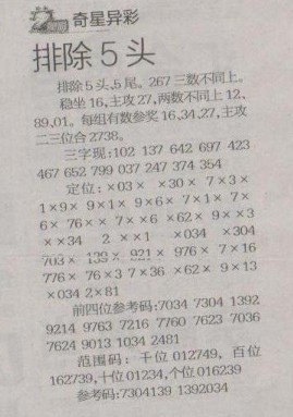 【奇星异彩】第1257预测信息<特区报>