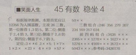 【笑面人生】第1259预测信息<特区报>