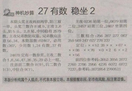 【神机妙算】第1260预测信息<特区报>