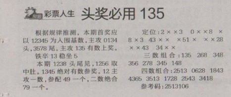 【彩票人生】第1263预测信息<特区报>