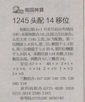 【南国神算】第1263预测信息<特区报>