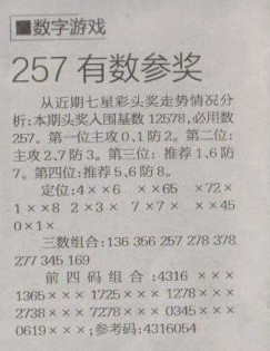 【数字游戏.】第1264预测信息<特区报>
