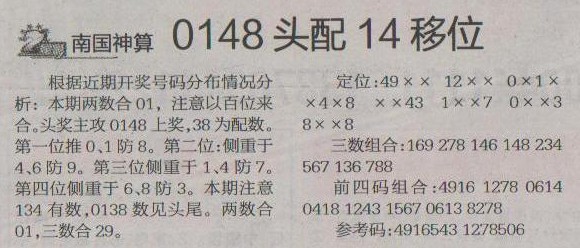 【南国神算】第1264预测信息<特区报>