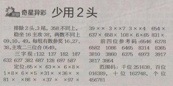 【奇星异彩】第1264预测信息<特区报>