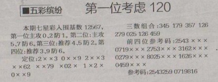 【五彩缤纷】第1265预测信息<特区报>