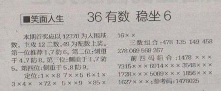 【笑面人生】第1265预测信息<特区报>