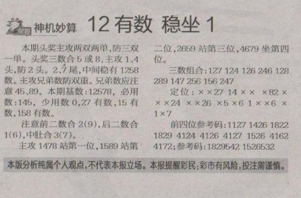 【神机妙算】第1266预测信息<特区报>