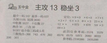 【玉中金】第1266预测信息<特区报>