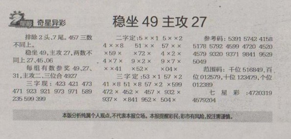 【奇星异彩】第1268预测信息<特区报>