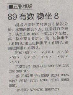 【五彩缤纷】第1269预测信息<特区报>