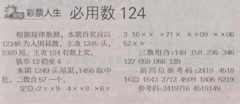 【彩票人生】第1270预测信息<特区报>