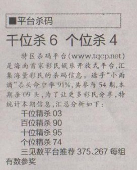 【平台杀码】第1270预测信息<特区报>