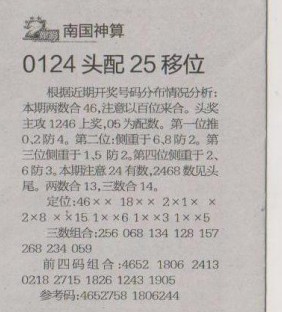 【南国神算】第1272预测信息<特区报>