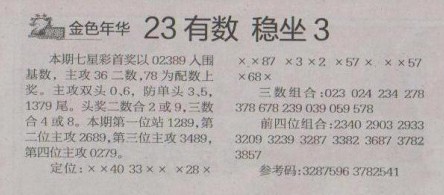 【金色年华】第1272预测信息<特区报>