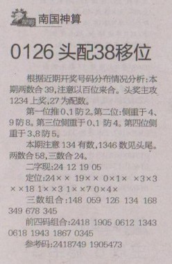 【南国神算】第1273预测信息<特区报>