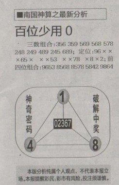 【南国神算】第1274预测信息<特区报>