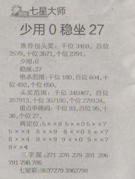 【七星大师】第1274预测信息<特区报>