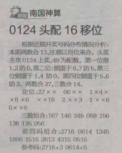 【南国神算】第1275预测信息<特区报>