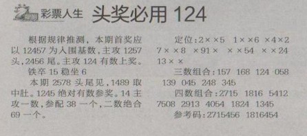 【彩票人生】第1275预测信息<特区报>
