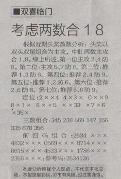 【双喜临门】第1279预测信息<特区报>