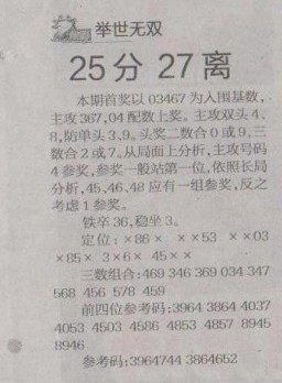 【举世无双】第1279预测信息<特区报>