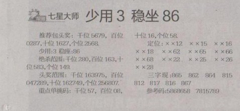 【七星大师】第1279预测信息<特区报>