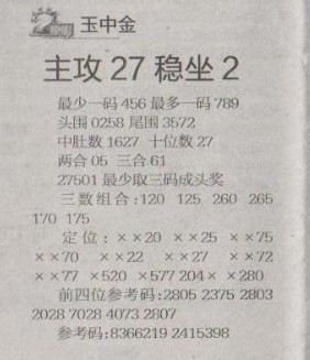 【玉中金】第1280预测信息<特区报>