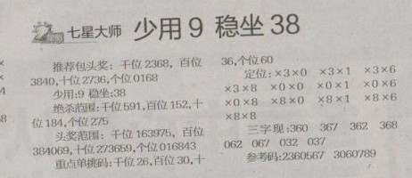 【七星大师】第1281预测信息<特区报>