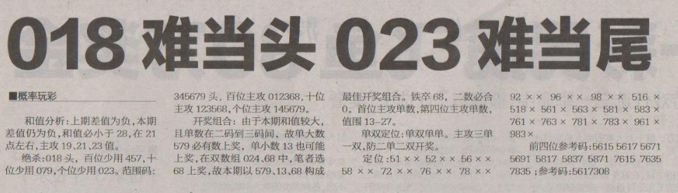 【概率玩彩】第1282预测信息<特区报>