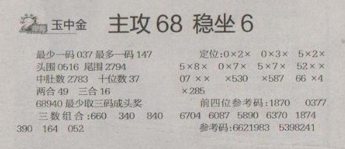 【玉中金】第1285预测信息<特区报>