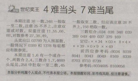 【世纪奖王】第1290预测信息<特区报>