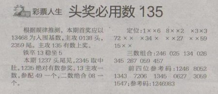 【彩票人生】第1290预测信息<特区报>
