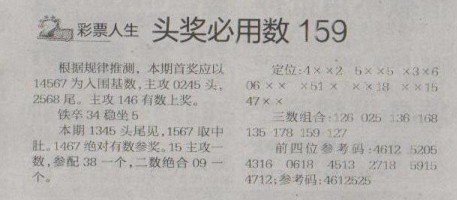 【彩票人生】第1293预测信息<特区报>