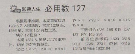 【彩票人生】第1294预测信息<特区报>