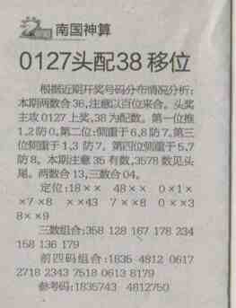 【南国神算】第1299预测信息<特区报>