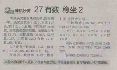 【神机妙算】第1299预测信息<特区报>
