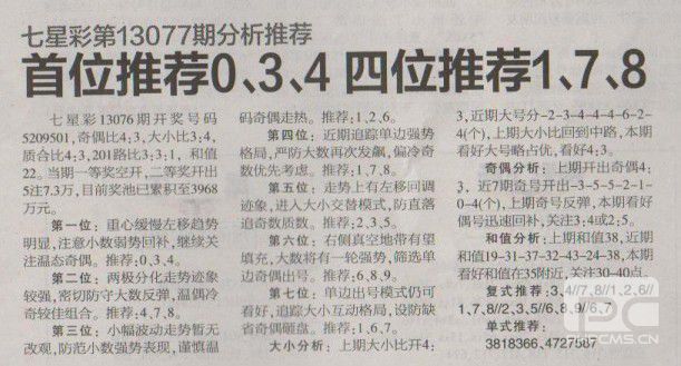 【七星彩分析】第1402期 <南国都市报>