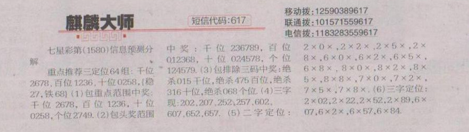 【麒麟大师】第1580期 <南国都市报>