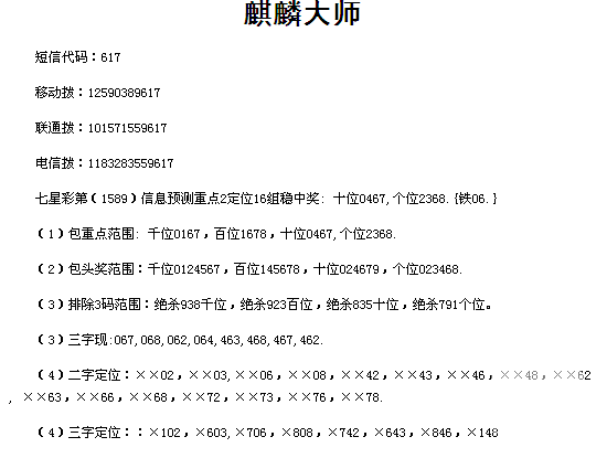 【麒麟大师】第1589期 <南国都市报>