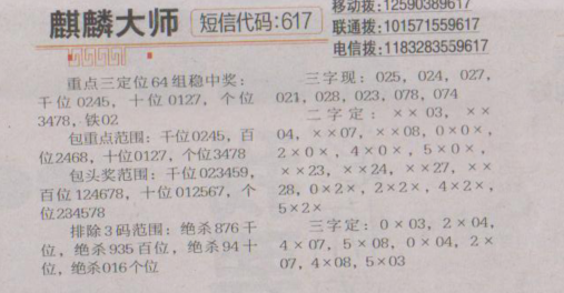 【麒麟大师】第1609期 <南国都市报>