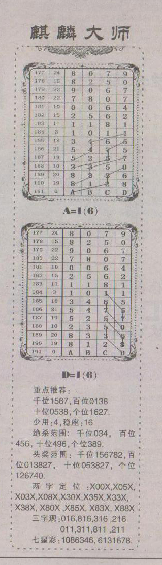 【麒麟大师】第1191预测信息<南国报>