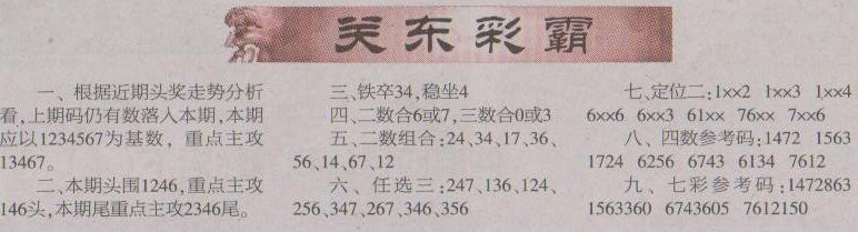 【关东彩霸】第1192预测信息<南国报>