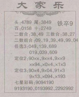 【大家乐】第1192预测信息<南国报>