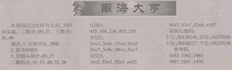 【南海大亨】第1192预测信息<南国报>