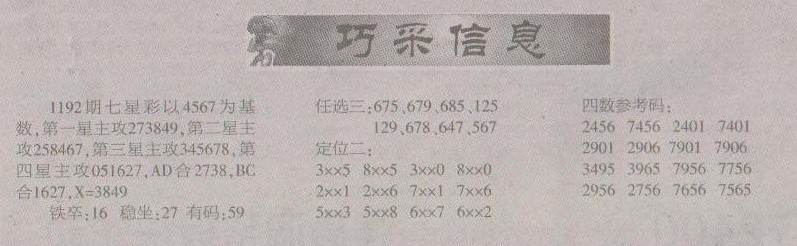 【巧采信息】第1192预测信息<南国报>