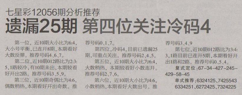 【七星彩分析】第1227期 <南国都市报>