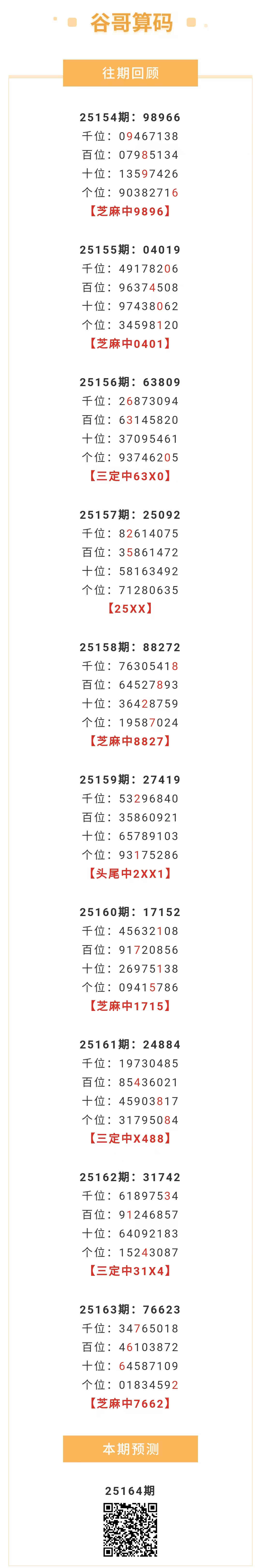 【排列五-25164期】本月圈中12次芝麻,芝麻近10中5;上期芝麻中7662