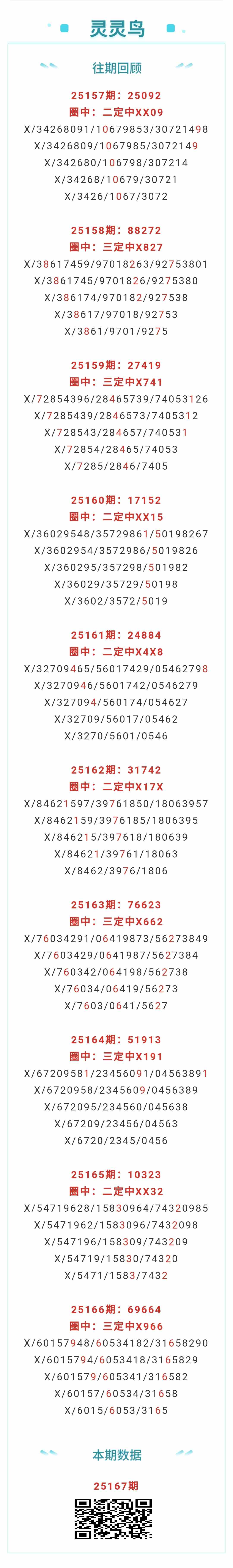 【排列五-25167期】本月圈中14次三定,三定近10中5;上期三定中X966